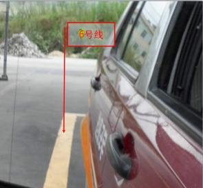 第5步中车身入库后,看左后视镜中车身尾部距左库边线(5号线)的夹角,保证后面略窄,切记不是车身与线平行,是后视镜的视野中车后身与线的距离略小。